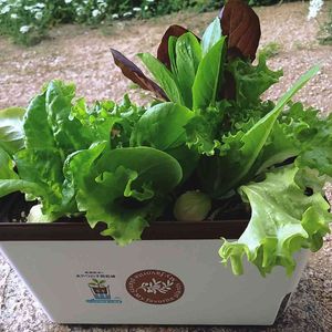 おはようございます☀️ 美容院でいただいた3種のレタスたち、青空のもとでもりもり育っています🥬💕 この後キッチンの出窓に置いて、少しづつサラダにします🥗