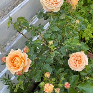 今日は岐阜は最高気温34度でした🥵 突然の暑さに薔薇達もビックリ💦 今朝のドルチェ・ヴィータ🌹 先日の雨で少し傷みましたが、まだまだ咲いてくれています🧡 この薔薇は、花付き・花持ちがよく、終わりまで汚なくならずしっかりとお花の形のまま咲いてくれる優秀な🌹です☺️ 後ろはまだ頑張っているロンサール🌹