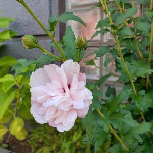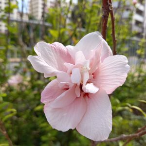 八重咲きのムクゲ 淡いピンクが綺麗でした。