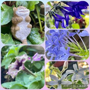 遅刻……ゴメン🙇♀️ 不思議の国のアリスの チェシャ猫🐈 葉っぱのベッド🛏️が大好き💕 チョッピリ涼しいみたい。 最近のベランダのお花達 サルビアガラニチカ 濃青色💙 ペチュニア ルリマツリ 今年初めてのお花。 ブルースター🩵 お花の色が涼しい🩵 今日も灼熱地獄🥵🥵 38℃😱💦😱💦😱
