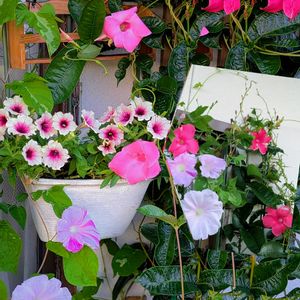 おはようございます😊☀ 今朝の 〈マンデビラ〉 〈ペチュニア〉 〈大輪咲きアサガオ〉 いつの間にか アサガオさんが マンデビラの 居住地に侵入∑(゚ロ゚;) !! もうゴチャゴチャ.。oஇ💦 マンデビラのお花は もう終盤---Eɴᴅ𓂃𓈒𓏸◌ ペチュニアさんが また ポチポチ咲いてきました😁 ✼••┈┈┈┈┈┈┈••✼ 今日も元気で 良い一日を お過ごしください🤗🎐🩷˖*
