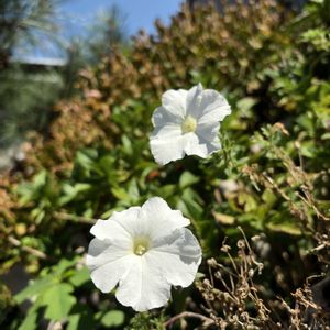 おはようございます😊 今日は何日ぶりかの青空☀️ 秋のお日さまを浴びた真っ白なペチュニア🥰