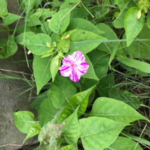散歩道のオシロイバナ ピンクと白の混色の株にとりどりのお花が 花びらが透けているようで綺麗でした🌸🤍🌸 朝5時半確認
