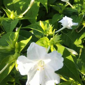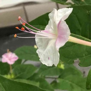 今晩は、🤗❣️ 白粉花見ていると、幼い頃からの思い出が沢山思い出します。🌸 耳飾りしたり、タネを取って集めたり🥰 今日は、綺麗に撮れたかな!😄❣️ 思い出のお花🥰 花言葉 (臆病)(内気)(恋を疑う)だそうです。
