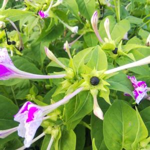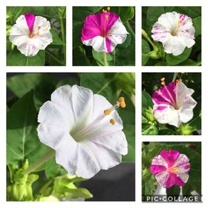 オシロイバナ ピンクと白の混色のみ 混色の種からは混色のお花しか咲きません 真っ白かと思ってもどこかにふが入っています 🤍💕🎶🤍💕🎵🤍💕🎶