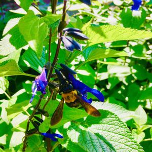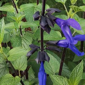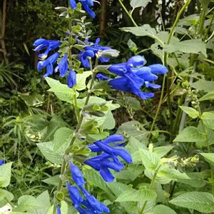 鮮やかなメドゥセージの花💙💜が開花✨~綺麗なのですが😍こぼれ種であちこち増えても💦紫花💕なので抜くに抜けない😂