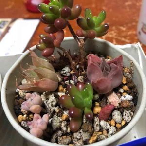 最近多肉に興味があるという同僚に 誕生日プレゼント😌💞 多肉好きになってもらえるよう🌱 手作りリメ鉢に寄せてみました🤗