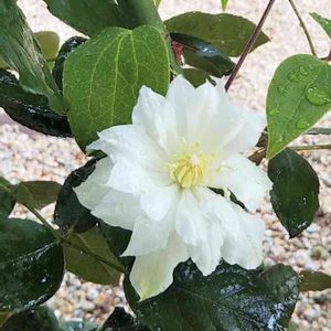 台風5号の影響で雨が降る中☂︎*̣̩⋆̩* 気づいたら咲いていました❤ クレマチス ダッチェスオブエジンバラ💕 想像していたより小ぶりちゃんでした😁 次のつぼみも見つけたので楽しみ😆✨ でもクレマチスは剪定とかが難しそうだから花が終わったあとが心配😅