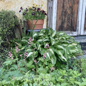 スタキス モニエリ 復活組? 去年我が汚庭の仲間入りwww お迎えした年は花をあげず… 葉っぱはモシャモシャと茂って 今年初お目見えです🫢