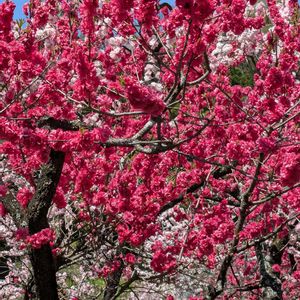 長野 阿智 ハナモモ観に行きって来ました。 温泉郷 包む紅白 見頃を迎え 紅白の鮮やかなコントラストを見せるハナモモ