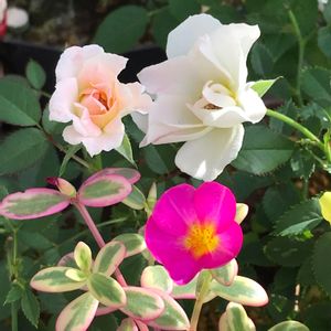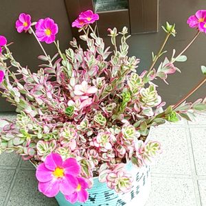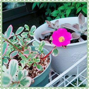 ポーチュラカ マジカルキューティ 今頃になって咲き出しました💕 咲かなくても斑入りの葉が綺麗だから いいかなとは思ってましたが😊