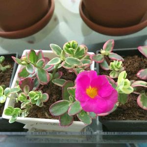 ポーチュラカマジカルキューティー 植木鉢からはみ出るくらいに育ちました! 今日は、ピンクのお花が咲いてます🌸