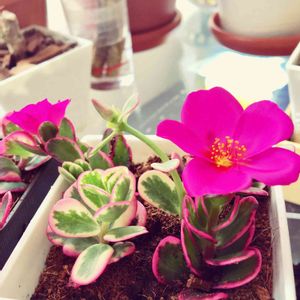 挿し芽していたポーチュラカマジカルキューティーが花咲いて🌸たぁ〜✨ 可愛い〜(๑˃́ꇴ˂̀๑) 元気に増えます様に✨