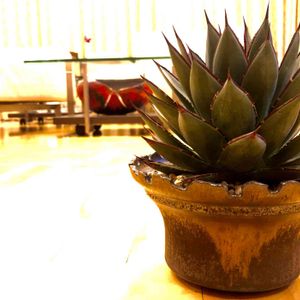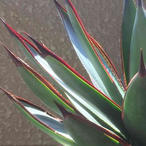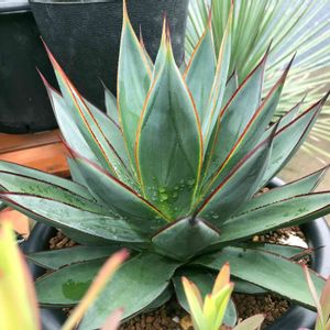 アガベ・ブルーグロー 光で透けたエッジがたまらなくキレイ❗ 春には、一回り大きな鉢に植え替えかな🤔