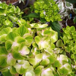 【紫陽花】 ハクサン 『マジカル ハイドランジア』 みどり💚になりました🥰 今のところ順調に色変しています😊 今年も冬まで行けるかなぁ?? 過去の『マジカル』は 下のキーワードタグ [❀すず❀マジカル]で見られます。