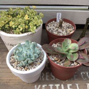 植え替えday♡ & 昨日お迎えした子♡ マッコス×2と白牡丹。 1週間程前に100均からお迎えした時には土が湿ってたので乾くの待ってやっと植え替えです( ˊᵕˋ* ) 右下の子は昨日ス-パ-内の花屋さんで見かけてお迎えしたセダム・ラベンダー♪ 土がベチャベチャなので当分植え替え出来そうにないわ(๑´罒`๑) そう言えば…先日、白牡丹はハクボタンと言う…と言う話題で盛り上がっだけど今回お迎えした子の📛にはシロボタンと書いてあるわ(^^;; 結構、シロボタンと思ってた人が多くてかく言う私もその1人です(*´ω`*)ゞエヘ 読み方どっちもアリ⁈なのかなぁ〜〜