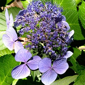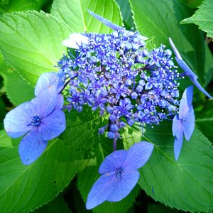 【散歩で出会ったお花】 ガクアジサイが日差しを浴びて、きれいに輝いています(^o^)