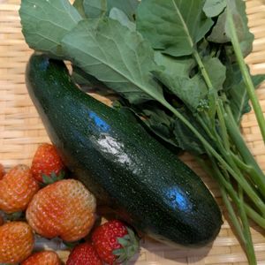 朝どれシリーズ スティックブロッコリー 初収穫のズッキーニ 少し不細工ちゃんですね💧 ズッキーニ早速ぬか漬けします🤤 これがまた美味しいんですよ😀 いちご🍓虫に食べられる前に早目に収穫