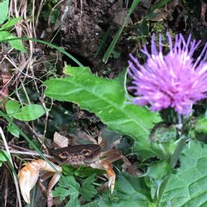 アザミ🥰のpicを撮ろうと してビックリ‼️ 株元で、サワガニが威嚇⁉️ まるで守っているような💕