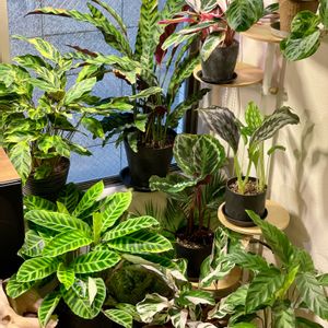 毎日毎日天気悪くてジメジメ💧ジメジメしているので、そんな気候を誰よりも喜んでいそうなカラテア及びショウガの仲間を集合させてみました。 🌳生姜の森ですw😆💚 アロイド、シダに次いでうちで勢力を奮っている軍団です😎 カラテア•エンペラーは本当によく増えます😊株分けしたので2鉢います🌿 マランタ(右上)の成長も凄まじくて、横に面積すごい取ってくるので参ってます💦😅