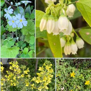こんにちは🌞 ブルーベリーの花可愛いですね❣️ 何処かから飛んできたサクラソウの小さい花💠 葉牡丹の花🌼 カタバミの小さい花🌼 見過ごしてしまいそうなお花さんたちも、元気に咲いています🥰