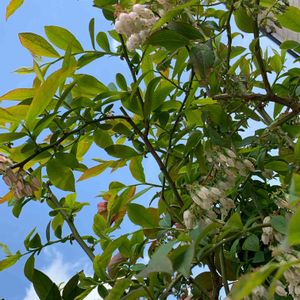 2年目のブルーベリー 上手く受粉作業する自信がないので 蜂さんに任せてます🐝 アイスと一緒に食べたいなぁ(*´꒳`*) 早く実がならないかな