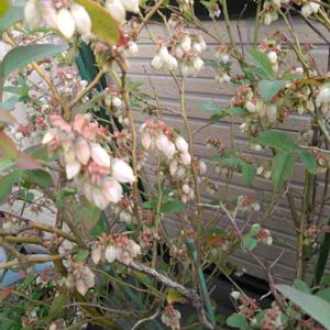 テラスのブルーベリー 「ピンクレモネード」さんが花を咲かせ始めました~ やっぱり早いなー でも、今年は「ブライトウェル」さんをお連れしているので、上手く結実してくれるといいな~🎵