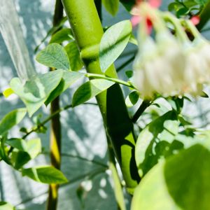 おはようございます☀️よき日を🌻ブルーベリーのお花🌸捻挫したので杖をついて歩いていたら、結構みんな見るものなんですね😆
