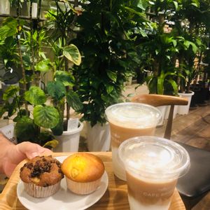 カインズホームで、 玄関アプローチのお花をみてます^_^ 休憩タイム☕️