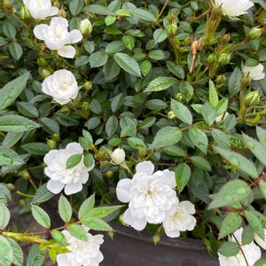 今日のお花 ミニバラ🌹のお花が綺麗に咲いてました。 はな阿蘇美にて 調べました。 品種名 雪あかり 純白の花はポンポン咲きで数輪の房で咲く。 花弁は厚く雨にも強い。 夢乙女の枝変わりで花色以外の性質は一緒だがややこちらの品種の方が樹勢が強い。 耐病性もあり無農薬栽培も可能。 木が充実してくると2番花までは春のように咲き、秋にも返り咲く。 夢乙女同様、節間が狭く葉が混みやすいのでハダニに注意する。 品種名 雪あかり 流通名 Yukiakari 別名 交配 夢乙女の枝変わり 分類 Mincl 作出・発表年 作出者 コマツガーデン 作出国 花期 弱い返り咲き 花色 白色 香り ほとんどない 花形 ポンポン咲き 花径 3cm 樹高 2.0m 幅 2.0m 樹勢 強い 樹形 つる性 耐病性 強い 用途 アーチ ○ フェンス ○ オベリスク ○ 壁 ○ 鉢植え 花壇 白い可愛いお花を沢山咲かせて とっても綺麗✨✨ですね🥰 今日もお元気でお過ごし下さいね🌹