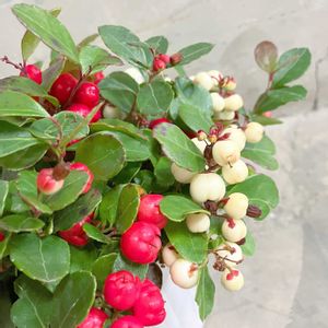 ❁. 。チェッカーベリー’チャオベラ’。.❁ 大きな赤と白の実がかわいい 『チェッカーベリー’チャオベラ’』をご紹介🍒🤍 チャオベラは直径約1.5cmの 大きな実が特徴です✨ 赤と白の組み合わせが クリスマスやお正月にぴったりですよね🎄 チェッカーベリーは 「大実コウジ」とも呼ばれていますᝰ✍︎꙳⋆ ヤブコウジの仲間で 寒さに強く半日陰を好みます☁️ 6月頃には可愛らしい花を咲かせるので ぜひ育ててみてください🌸 *育て方* 日向~半日陰を好みます。 高温多湿を嫌うので夏は 半日陰の涼しい場所へ移動させてください。