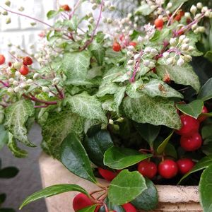 ヒメコウジ、チェッカーベリー 台風の為、ベランダから避難中