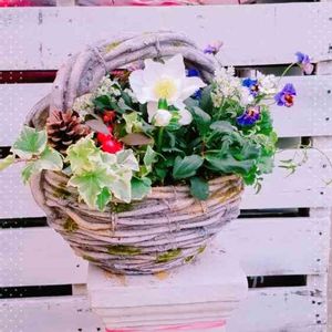 連投失礼致します(*- -)(*_ _)ペコリ 本日は月1の寄せ植え教室~ クリスマスローズを使うこと、母が買ってきてくれた籠のような鉢を使うこと… 鉢に負けないように頑張りました~😊🎶と言っても、やりたいように植え込みました🌼(  ̄▽ ̄)🌼ハハハ