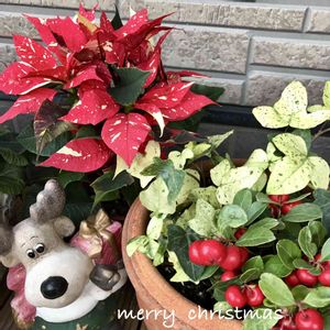 寄せ植えにしているチェッカーベリーも真っ赤になってます