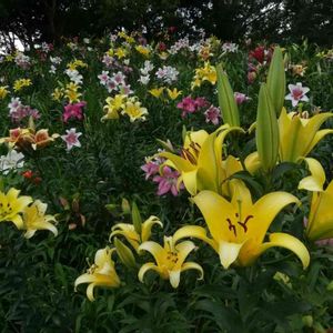可睡ゆりの園にて 谷間一面に黄色いユリが。💐☁️