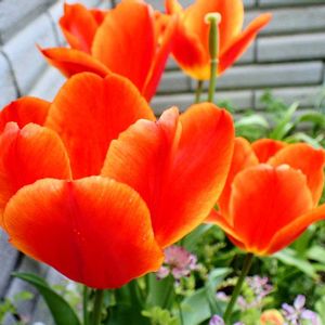 日曜ビタミンカラー🎶💛😍🧡 DH(ダーウィンハイブリッド系)のチューリップ、オックスフォードエリートです🌷 子供のころは別として、成人後自分で買って植えた初めてのチューリップのひとつです😊1983年の事ですから、もう40年以上も前の事です。サカタのタネ(当時は坂田種苗)さんの通販で、DH系5種セットで、内容は、オックスフォード(赤)、ゴールデンオックスフォード(黄)、アイボリーフローラデル(クリーム白)、ピンクインプレッション(桃)、そしてこの品種の各5個でした。 ご近所から、すごい大きなチューリップですねと言われて嬉しかったことを覚えていますヾ(≧∇≦)ノ(今では別に普通のサイズじゃんといわれるでしょうが^^;) 時代は過ぎて優れた新品種が次々出てきても、これらの品種は根強く流通していますね。 しかしながら、アイボリーフローラデルと、この品種は見かけなくなっていたのですが、ここ数年また販売されているのを見て懐かしくて購入しています😊アイボリーフローラデルはまた見られなくなってしまいましたが・・・💦 似た品種は沢山出ていますが、この外側に向かってオレンジがぼやけていくグラデーションの加減が絶妙で、大好きな品種なんですよ💕😍