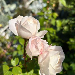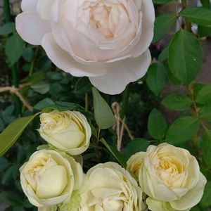 昨日は一日中雨が降り続き、せっかく咲いたバラが心配でしたが、デスデモーナ沢山咲いてくれました🌹白系のバラは傷みやすいのにとっても強い😊鉢栽培で大きくなったので思い切って剪定した方が良かったですね✨