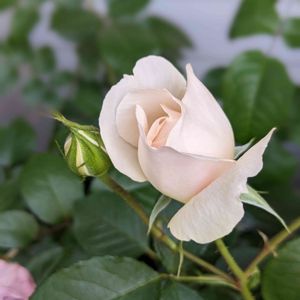 今日は統一地方選挙投票日。 やっと穏やかな日常が戻って来ます。 この1週間 庭に出れば選挙カーと遭遇。暑い中 必死に叫んでる姿を見れば、思わず皆さんに手を振る私👋 ご丁寧に、車から降りてきてご挨拶する人、車を停め、大きなマイクでお礼を言う人… 近所の人は「まーた手を振ってる💦」って呆れているでしょう。 でも、これ、私の4年おきのイベントのようなものよ🤣 🥀デズデモーナ 真っ白でなく淡いピンクが入るコロンとした花姿。爽やかな香りがします😍 背も低く樹形もあまり乱れずこんもり咲くカップ咲き🥀 耐病性もあり優秀👏 さて、今日も午前中お仕事。その後 投票に行ってきまーす👋