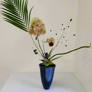こんにちは😃 今回の生け花💐 生花新風体二種(しょうかしんぷうたいにしゅ)に挑戦しました 学生の頃に習っていた生け方をサビついたウデでやり直すのは、なかなか難しいですね💦