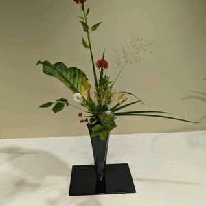 こんにちは😃 今回の生け花は、先生から花材にグラジオラスがあるとお聞きして、これは生花新風体(しょうかしんぷうたい)で生けてみよう❣️と思い自前のお花器を使ってチャレンジしてみました💐 自由花ばかり生けて久しぶりのお生花でドキドキでした😅