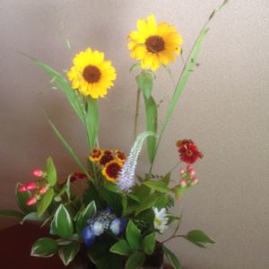 ヒマワリを使ったアレンジ 夏に元気をいただきます(*^_^*)