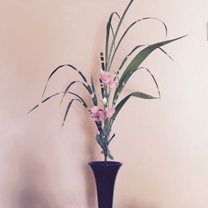 大好きなトルコキキョウと ヤハズススキ シランの葉で生花を生けました(*^_^*) 池坊の三種生です。 ススキは風をイメージさせてくれるので、夏に爽やかさをくれます〜♪