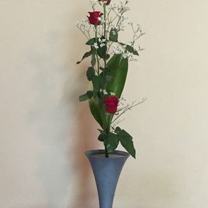 赤いバラの生け花 やはり、赤は情熱的ですね〜♪ 花材 バラ スターチスの白 ハラン 斑入り