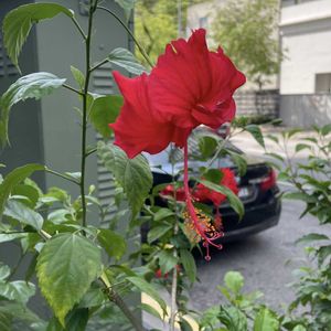 久し振りの青空 そろそろ雨季も終わりかしら 真っ赤なハイビスカスの 長い蕊が重たそう