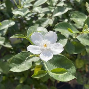 雨季は過ぎた模様 青空の下で セイロンライティアの花びらがキラキラです