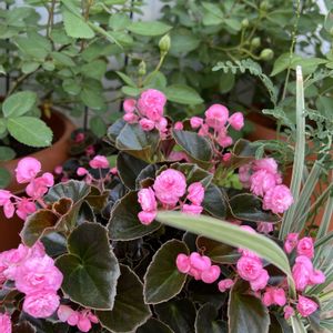 年越しの花達 1.八重咲のベゴニア花は小さいけど花数が多く銅葉と相性いいわ 2、白花タツナミ草花友からの頂き物元気よく育ってます😃
