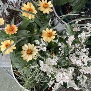久々に寄せ植えを作りました🌼 この夏お花が次々と枯れてしまい、ベランダが寂しくなったので、新宿gggで花苗をいろいろお迎え。 まだまだこちらは暑いけど、植欲抑えきれなかったー🤣 お迎えしたジニアと斑入りのアルテラナンテラとグリーンのカレックス、あと、ベランダで育っていたミスキャンタスも足してみました🪴 ひとつ目の寄せ植えです。 かわいいのができたよ〜😆🌼