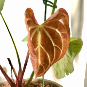 アンスリウムレガレ(3号)新葉 このような葉の状態を見るのは初めてで 今後どう変化していくのか検討つきません🧐❓ 力強さは無いけども 細かな葉脈までクッキリ見えていて複雑な模様の葉になるのかな❓