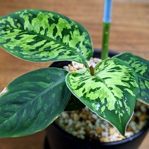 先週お迎えしたホマロメナ・ワリシー・カモフラージュ🌿迷彩柄の葉っぱがカッコいいけど少し色が薄めなので暫くはカーテン越しの陽当たりで様子をみます✨
