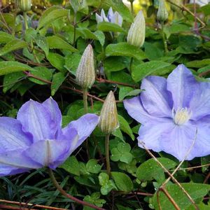 庭のテッセン、 今年は少し小振りですが、 花数は多そう。